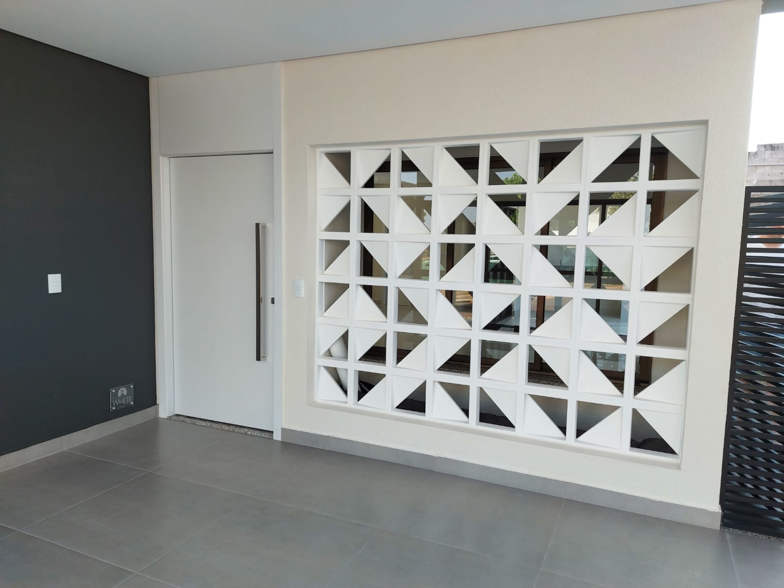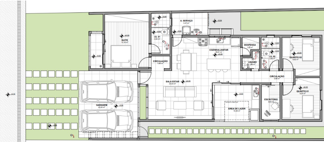 Os cômodos íntimos ficam nas áreas periféricas da casa ocasionando maior privacidade para todos. Falando em privacidade, utilizamos na fachada o elemento vazado chamado COBOGO que permite a entrada de luz e ventilação e ao mesmo tempo não deixa a janela da fachada exposta para as pessoas de fora da casa.